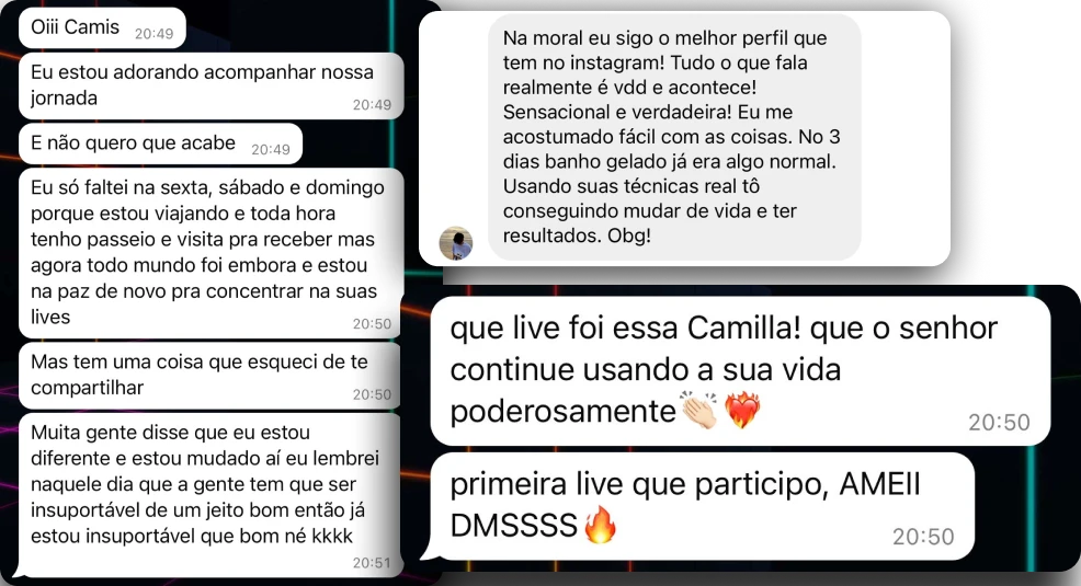 Hoje Camilla conta com mais de 13 milhões de jovens em suas redes sociais sendo impactados diariamente com novas formas de encarar a vida. Se você estiver pronto para transformar sua vida, é aqui que sua jornada começa.
